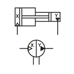 Zawór sterujący kierunkiem przepływu - sterowany za pomocą ciśnienia w obu kierunkach - pięć dróg przepływu, dwa niezależne połączenia. |