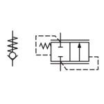 Zawór zwrotny ze sprężyną - otwiera się gdy ciśnienie wejściowe jest wyższe niż suma ciśnienia wyjściowego i ciśnienia wynikającego z siły sprężyny. |
